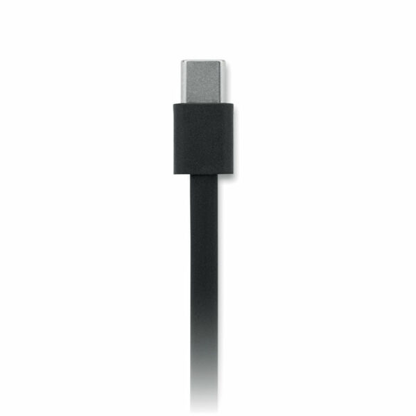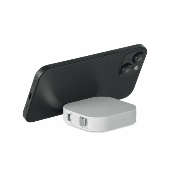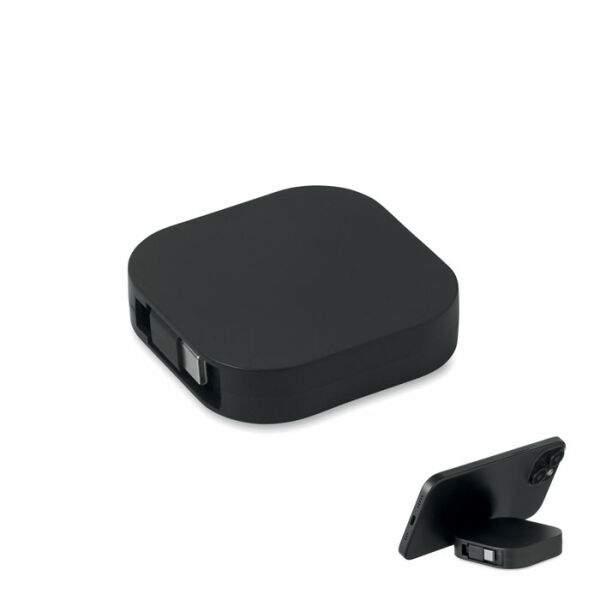 Uittrekbare oplaad- en datakabel met telefoonhouderfunctionaliteit. PVC-kabel met ABS-behuizing voor stroom en gegevensoverdracht (480 Mbps). Type-C naar Type-C aansluiting. Vermogen: 100W.